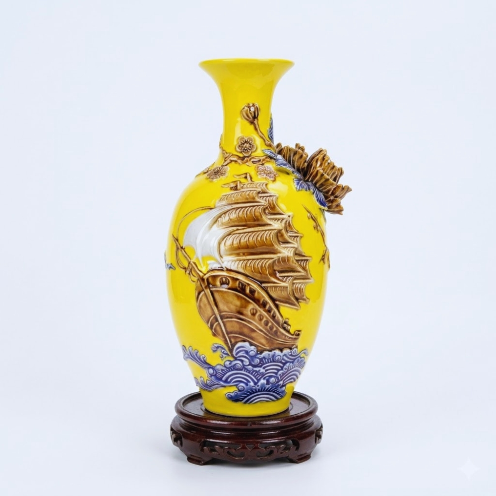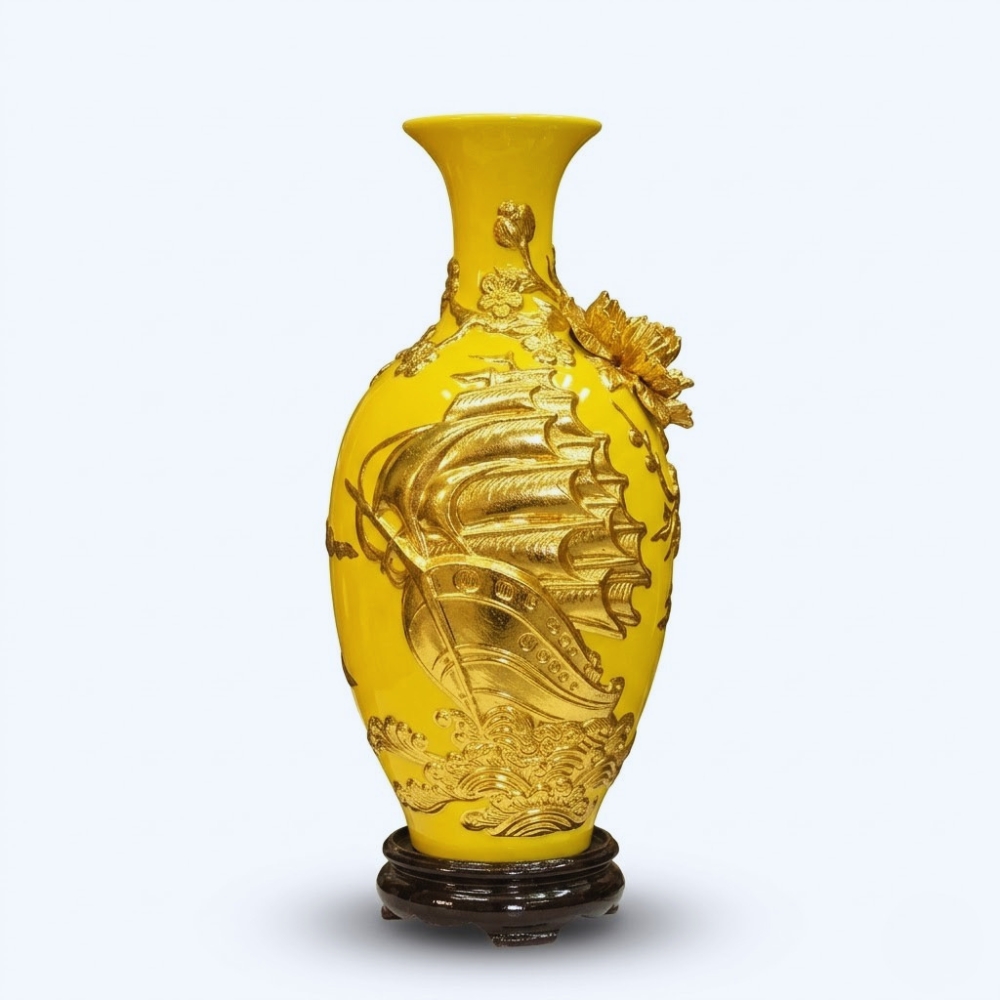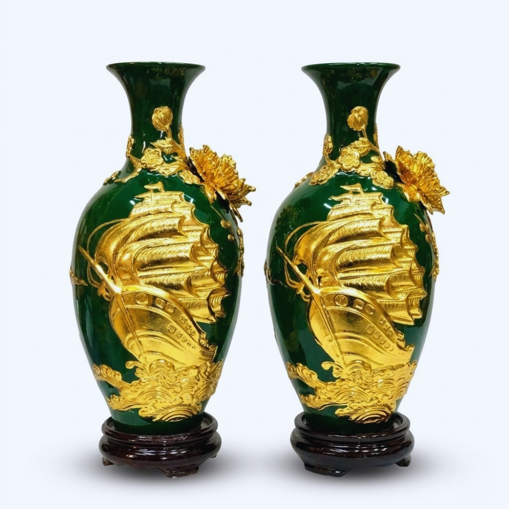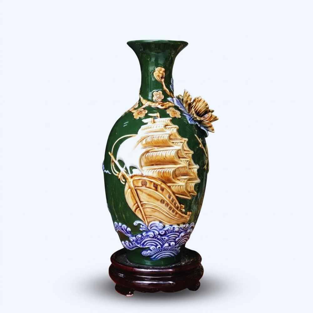 Chất liệu: Men màu dát vàng, thuận buồm đắp nổi