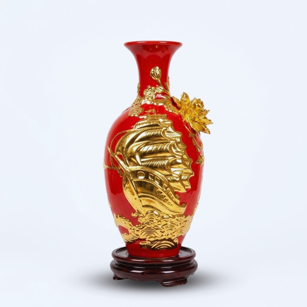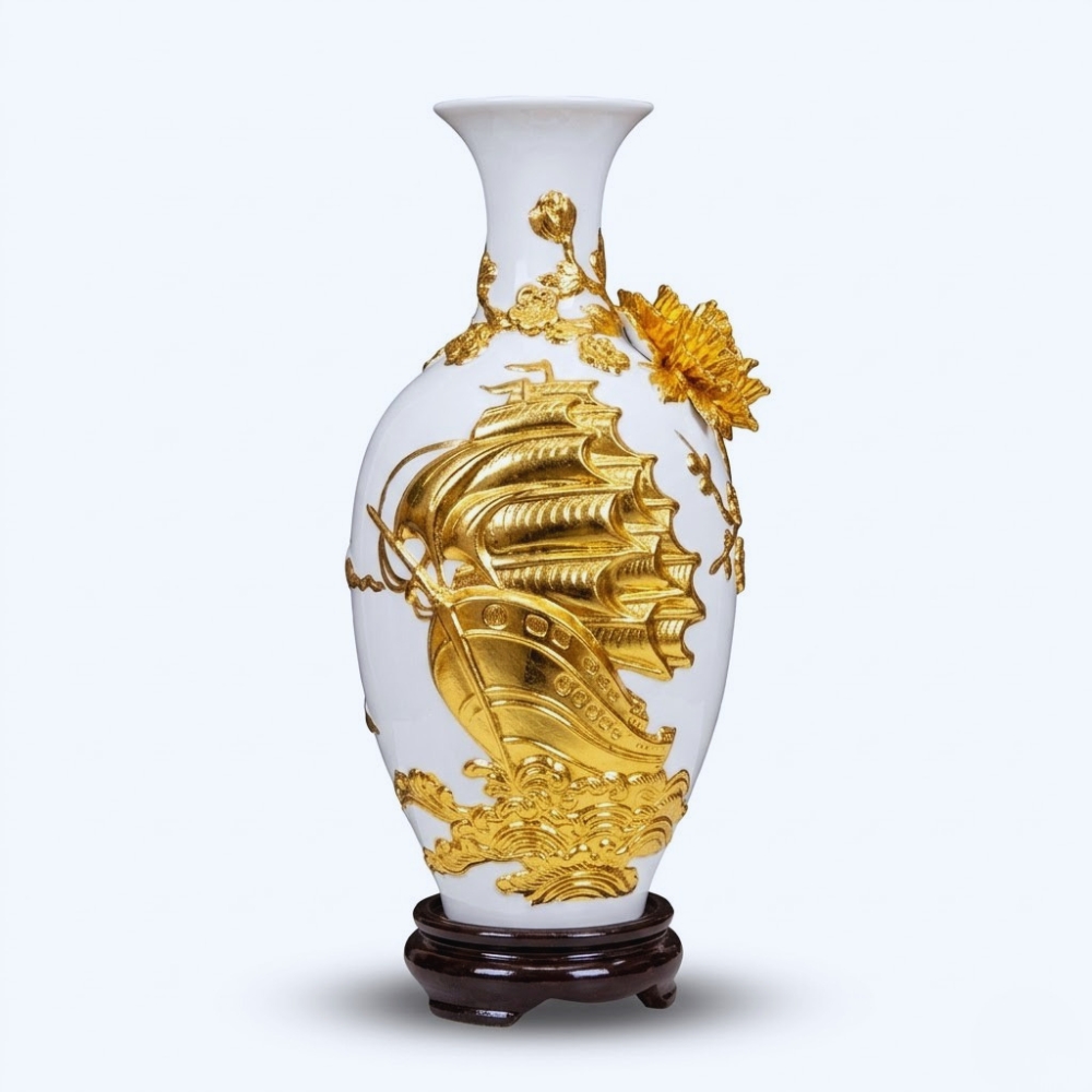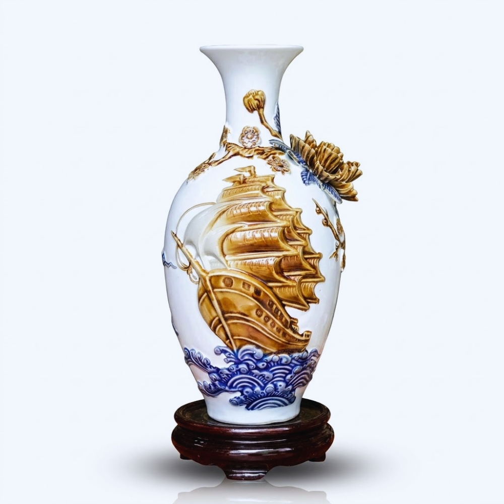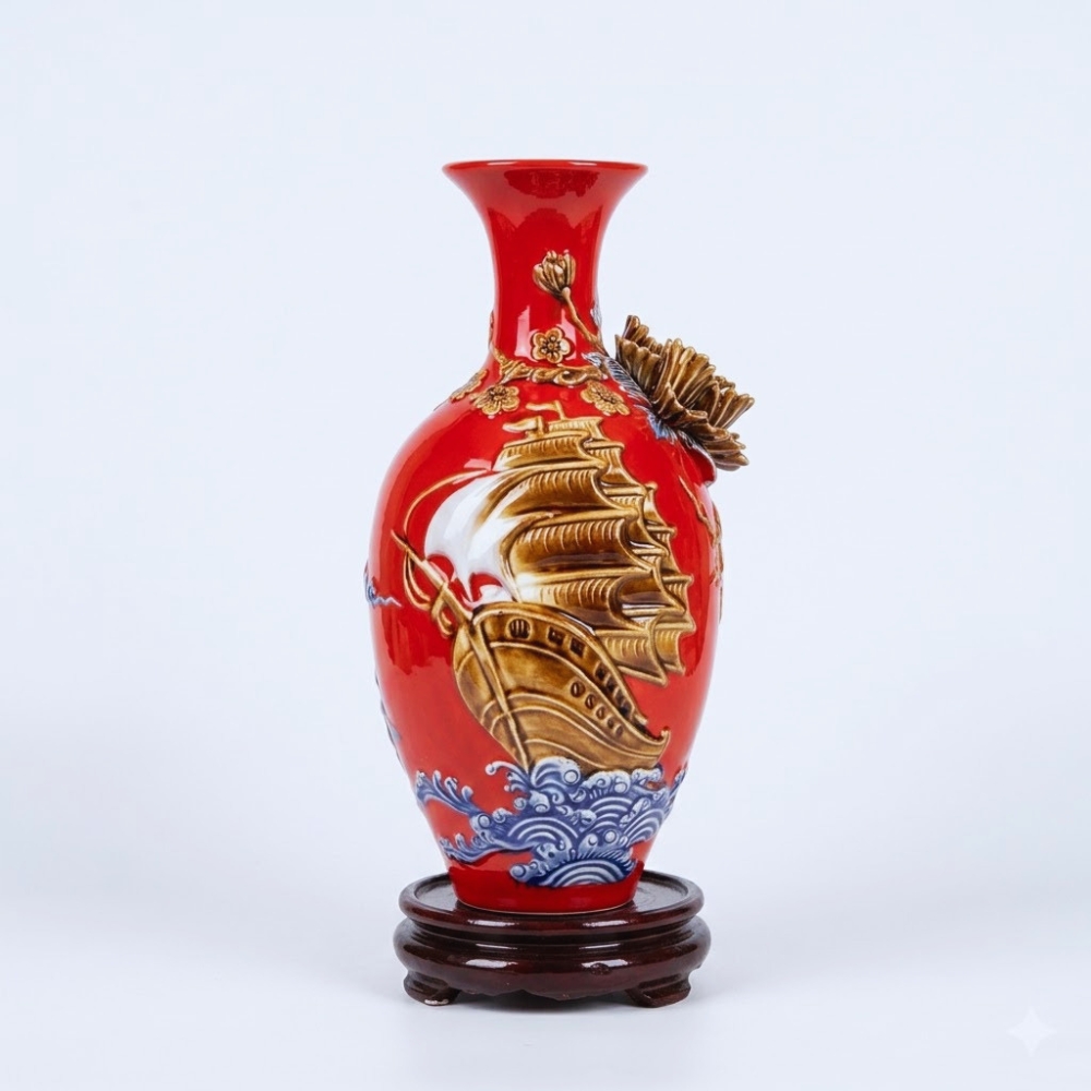 Chất liệu: Men màu dát vàng, thuận buồm đắp nổi