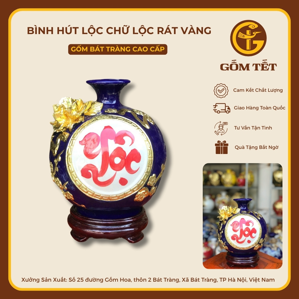 Bình Hút Lộc Chữ Lộc Rát Vàng