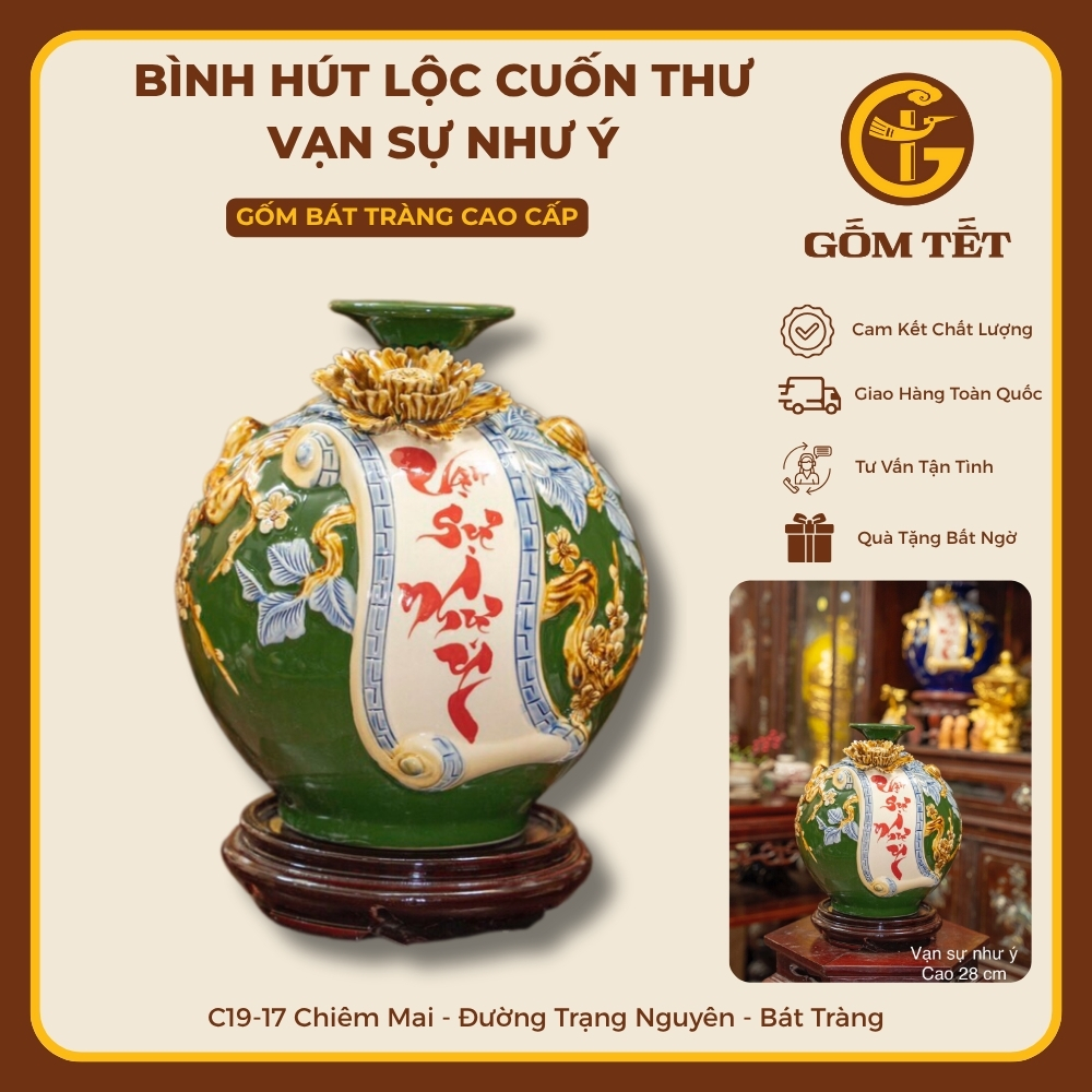 Sản phẩm: Bình Hút Lộc Thuận Sự Như Ý Men Màu