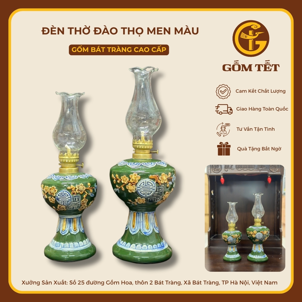 Bộ Trà Đào Thọ 3 Chén Men Màu