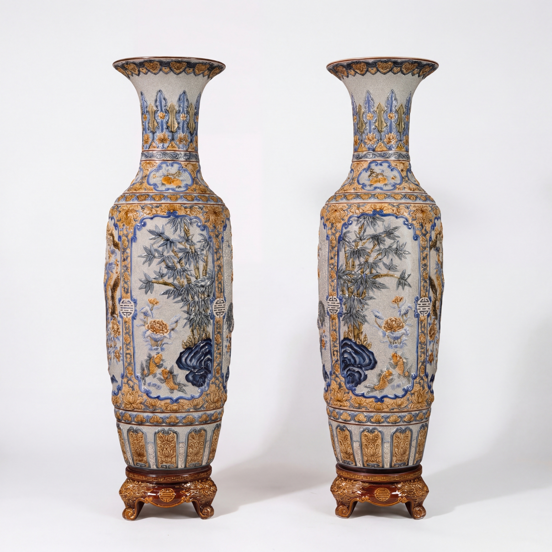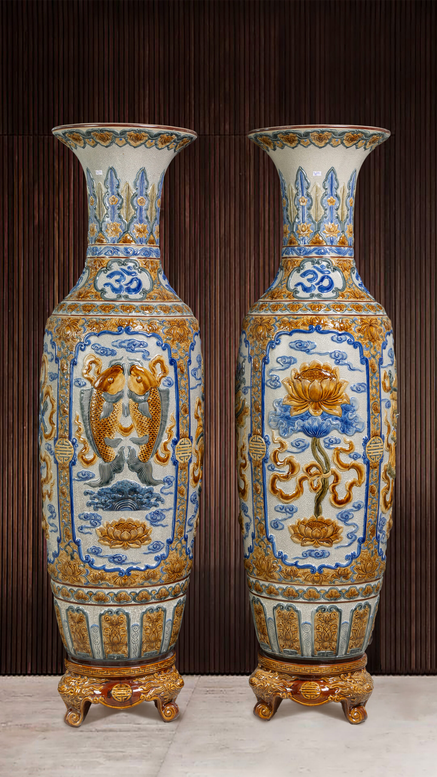 Lọ Lục Bình Phúc Đức Hoa Nổi Men Rạn