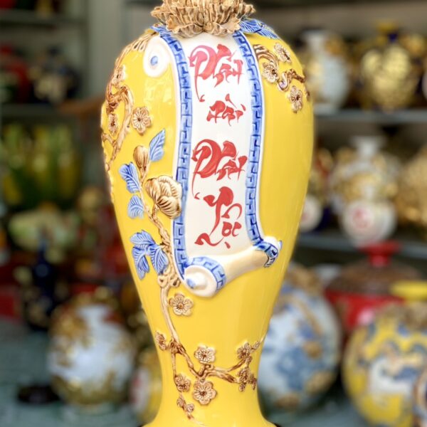 Mai Bình Cuốn Thư Phát Tài Phát Lộc Men Màu
