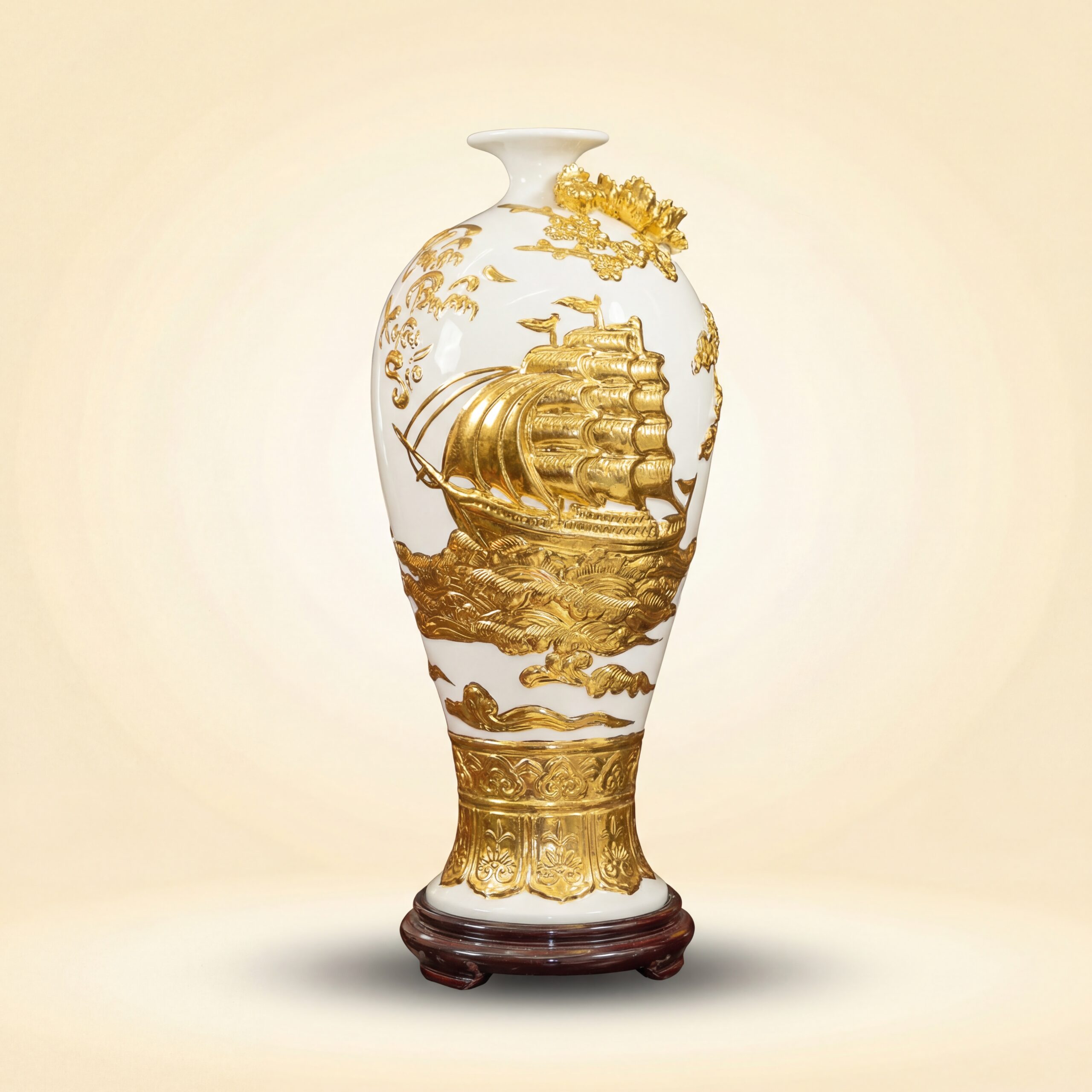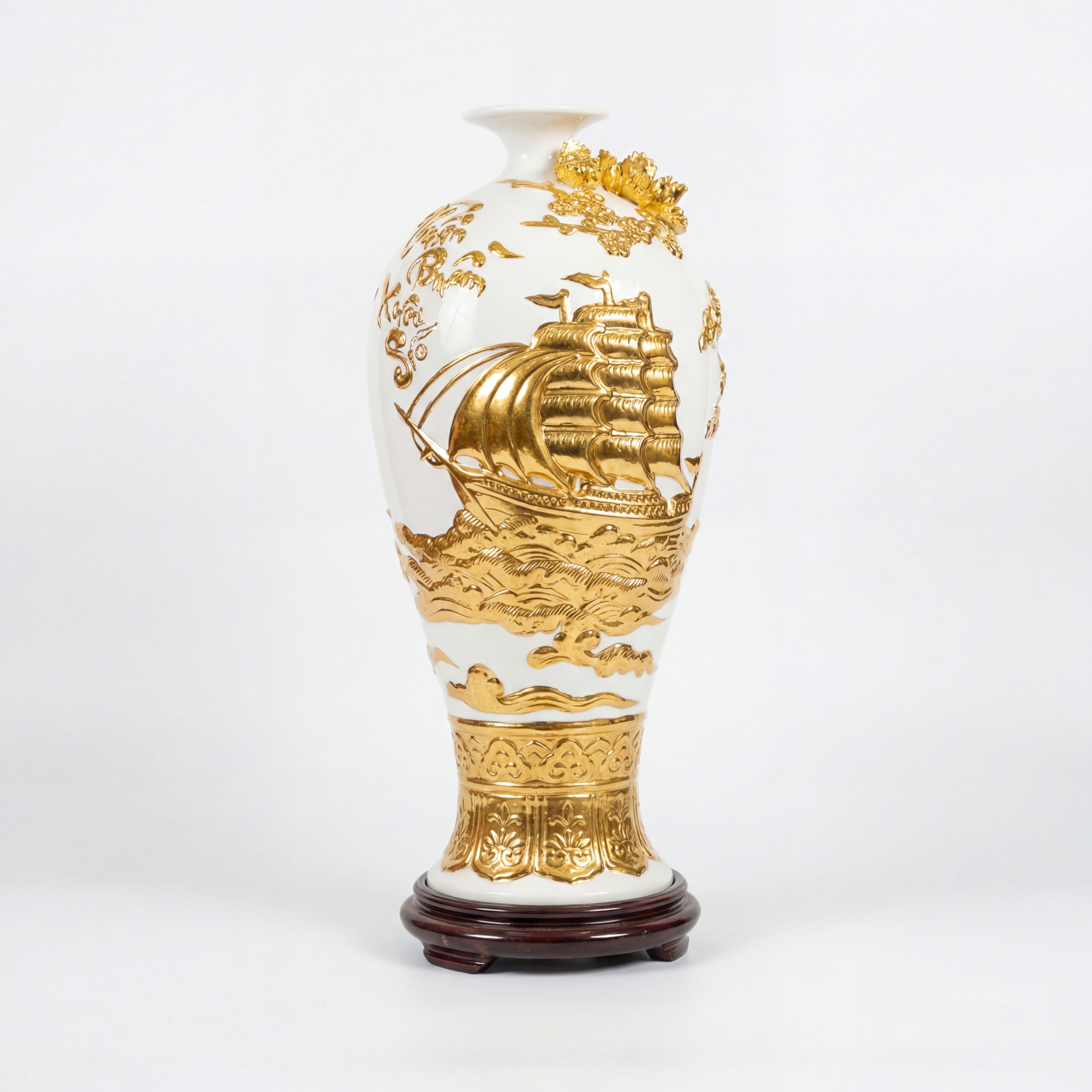 Chất liệu: Men màu Rát Vàng, Thuận Buồm Đắp Nổi