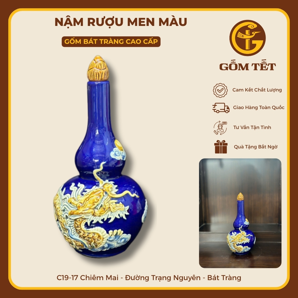 Nậm Rượu Vân Rồng 2 Bầu Men Rạn