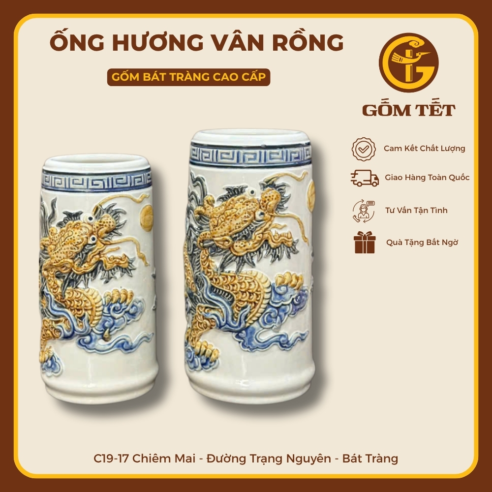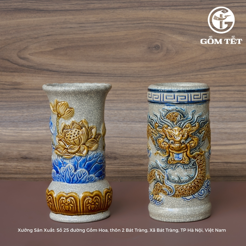 Ống Hương Sen – Rồng – Đào Thọ Men Rạn